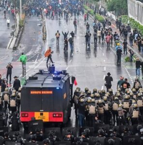 5. تصاعد الأحداث: تحولت التظاهرات إلى أزمة وطنية مع حرق مبانٍ حكومية (مثل مقر الشرطة في جاكرتا ومباني برلمانية في باندونغ ومكاسار)، تدمير سيارات، ونهب متاجر في مناطق مثل سينين.
