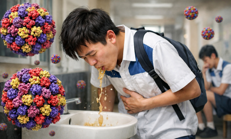 وينتقل فيروس “نورو” بسهولة عن طريق الأسطح الملوثة، الطعام أو الاتصال المباشر، ويتسبب عادةً في أعراض تشمل القيء والإسهال، ما يجعله شديد العدوى خصوصاً في البيئات المغلقة مثل المدارس.