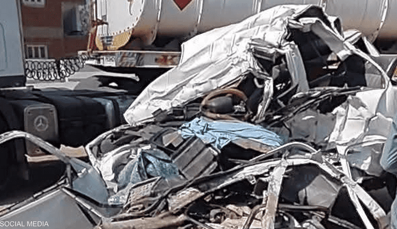الحادث ناتج عن اصطدام عنيف بين شاحنة نقل ثقيل وحافلة صغيرة (ميكروباص) كانت تقل عددًا من الركاب، مما تسبب في تدمير كامل للمركبتين.
