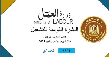 أصدرت وزارة العمل، اليوم الأربعاء، نشرة التوظيف نصف الشهرية التي تُعلن فيها عن فرص عمل جديدة في مختلف المحافظات، بالتنسيق مع شركات القطاع الخاص.