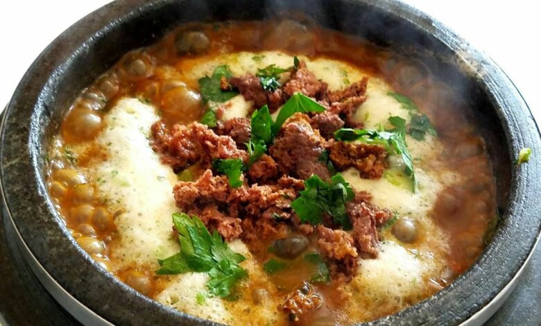 3. الطبخ البطيء: أضف الماء أو المرق، غطِ القدر، واتركه على نار هادئة لمدة 60-90 دقيقة حتى ينضج اللحم تماماً ويصبح طرياً لدرجة التفتت. السر الثالث: إذا أردت حساءً غنياً، اترك العظم في القدر أثناء الطهي، فهو يضيف عمقاً للنكهة.