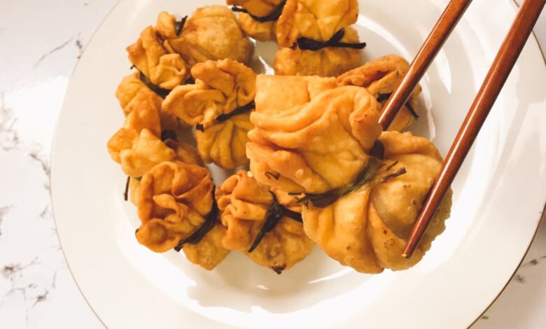 – الحشوة: امزج الروبيان أو الدجاج المفروم مع الزنجبيل، الثوم، البصل الأخضر، وقليل من صلصة الصويا والسمسم.